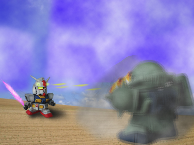 ほんとは劇中のビームサーベルでザクを貫いてるシーンを作りたかったんだけど無理でした・・・